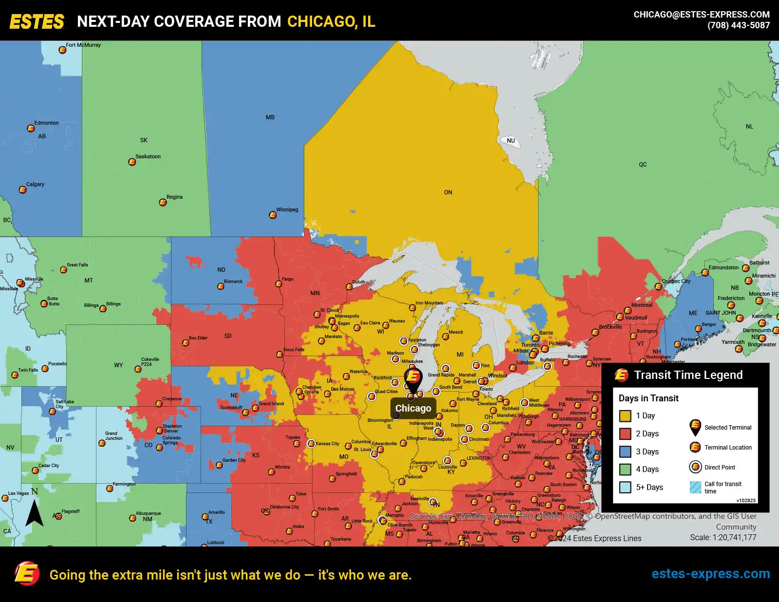 Estes offers reliable next-day LTL shipping from Chicago to Toronto, Windsor, and nearby Ontario destinations—supported by our nationwide team of Border Concierges and featuring some of the best freeze protection in the industry.
