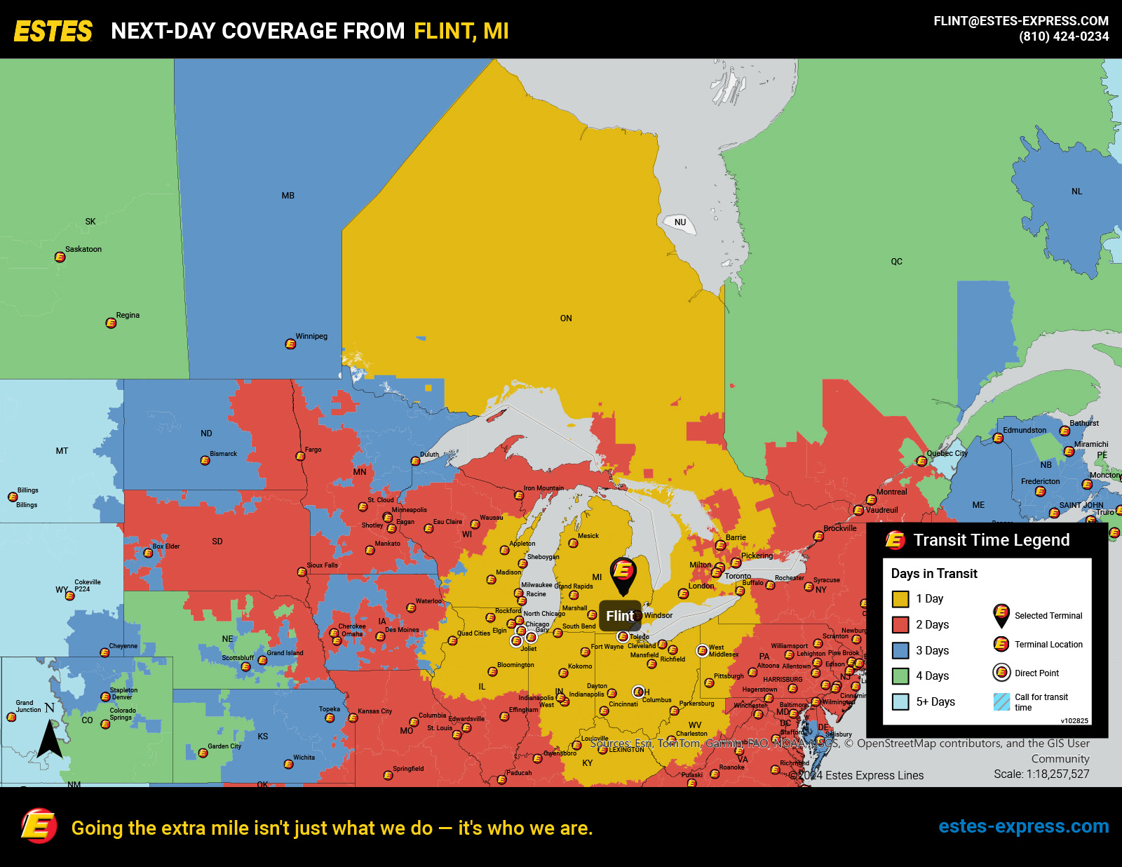 Contact us today and discover why companies throughout Flint, Saginaw, and Midland trust their LTL freight shipping to Estes.
