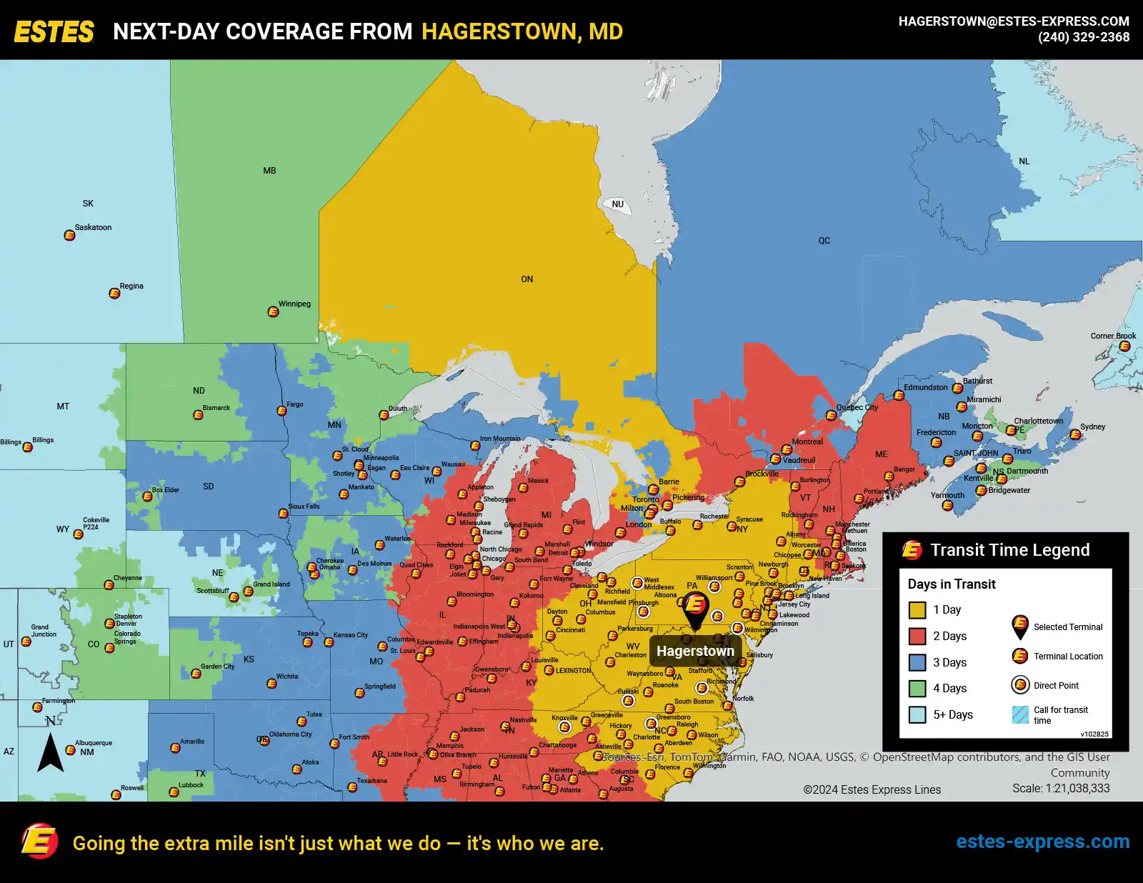 Contact us today, and we’ll show you why businesses throughout Hagerstown, Germantown, Frederick—and beyond—trust their LTL freight shipping to Estes.