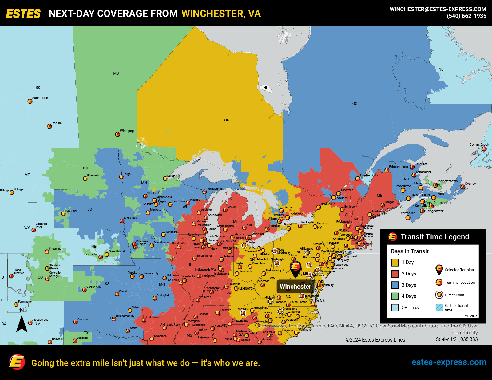 Estes also offers reliable next-day LTL shipping from the Reston-Leesburg-Winchester area to Toronto—supported by our nationwide team of Border Concierges and featuring some of the best freeze protection in the industry!